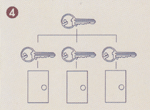 in this system, one grand-master key in used to open all lock within the system and several section master keys are used to open all locks of each section, while aech lock still retain its own proper key. |